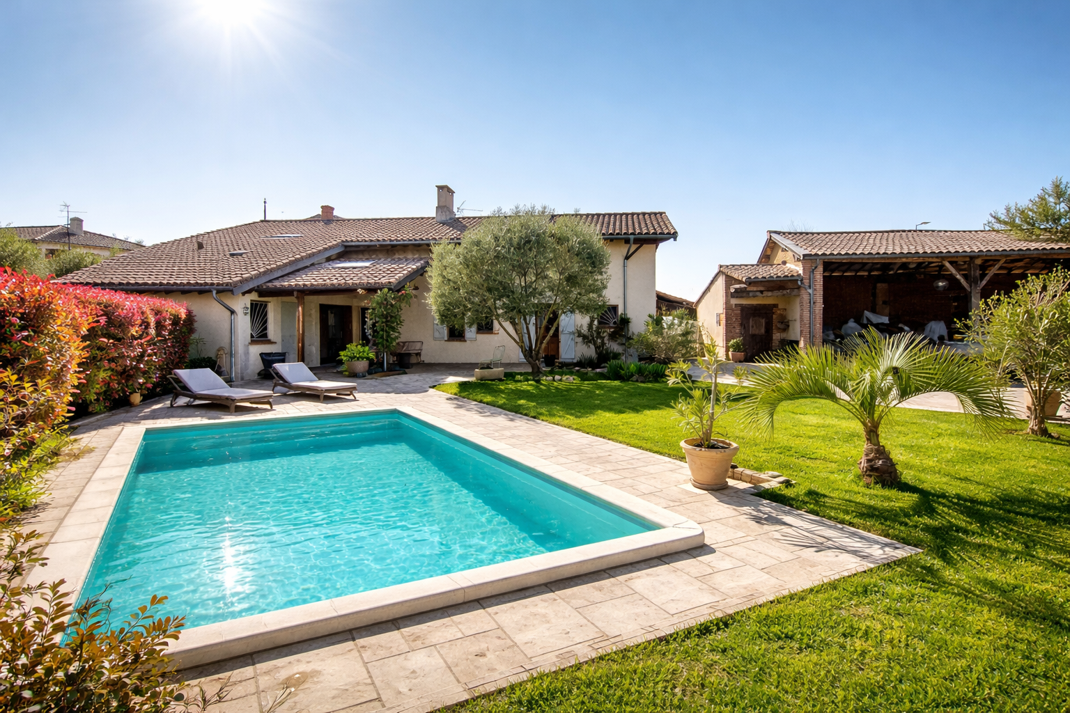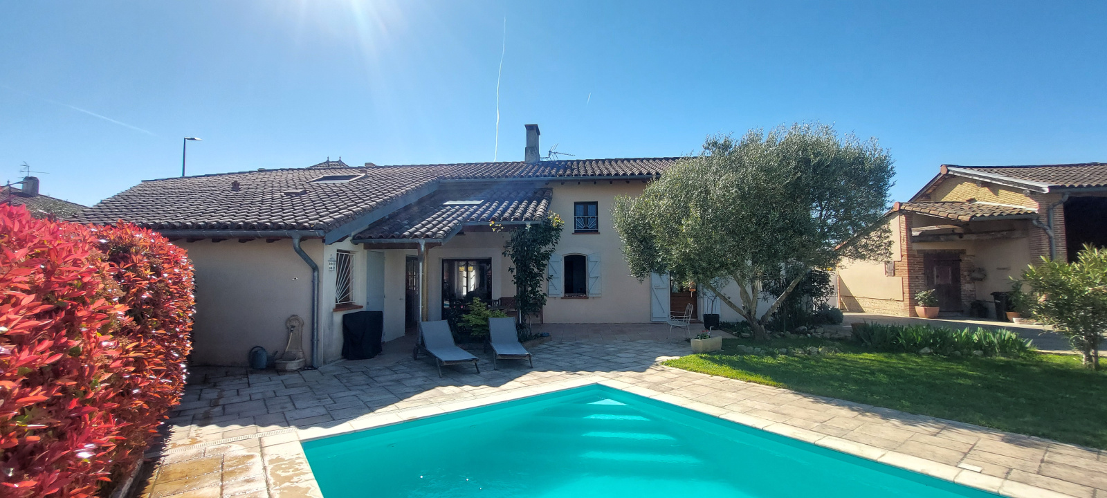 À l’extérieur, la propriété propose une terrasse couverte, un véritable espace de vie avec piscine, pool house et cuisine d’été, parfaits pour profiter des beaux jours.