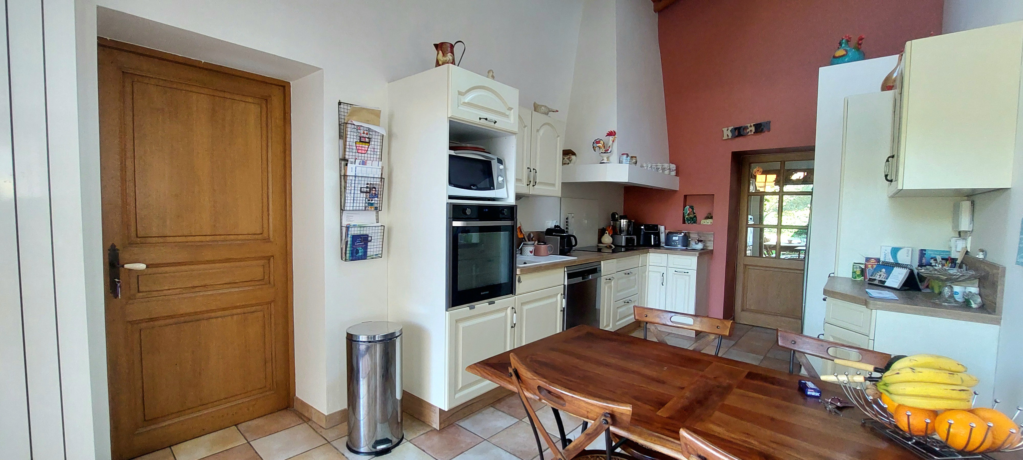 Au rez-de-chaussée, une grande entrée mène à un séjour lumineux de 38 m² avec insert moderne, idéal pour les soirées d’hiver, ainsi qu’à une cuisine conviviale de 15 m² avec une belle hauteur sous-plafond et avec arrière-cuisine / buanderie.
